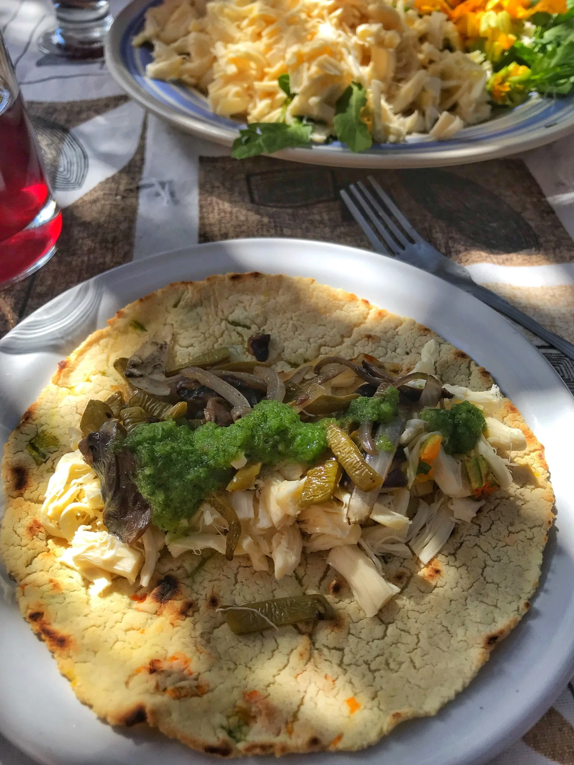 Other uniquely Oaxacan dishes include tlayudas (very large, very thin tortillas topped with beans, cheese, veg, and your choice of meat); tasajo (a thin, almost jerky-like piece of beef); and chapulines (roasted, salted, and chili-seasoned grasshoppers). Yes, we tried them. They’re sort of vinegary and crunchy. I recommend adding them to your Tostiesquites (Tostitos topped with corn kernels and mayonnaise).