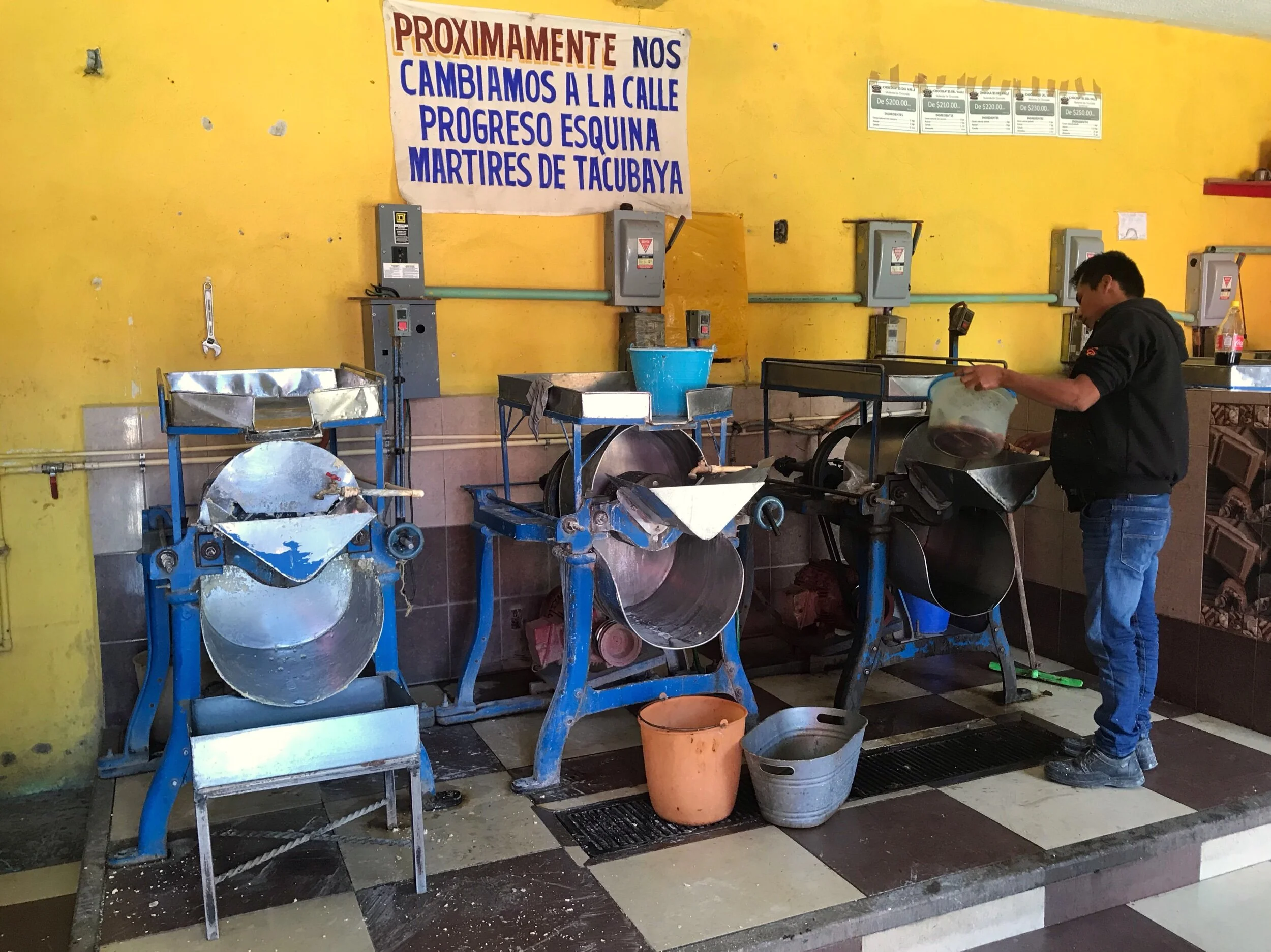 Members of the community can bring their moles, maiz, and cacao here to be ground