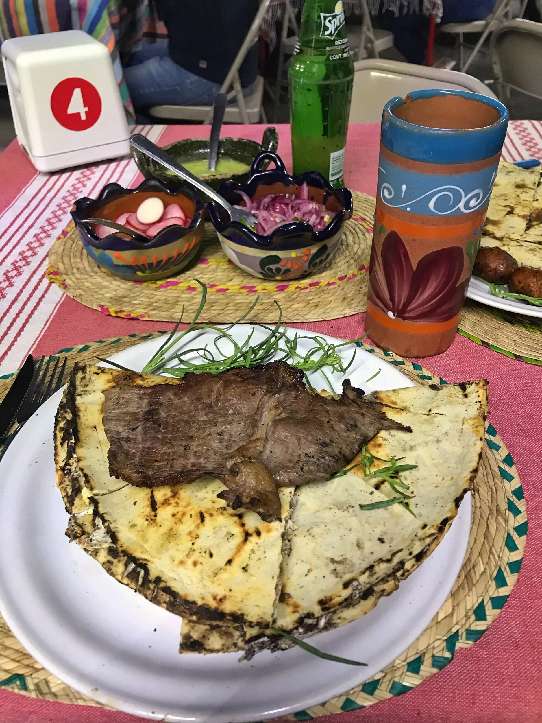 Tlayudas are typically served flat, but mine was folded quesadilla style (with tasajo on top)
